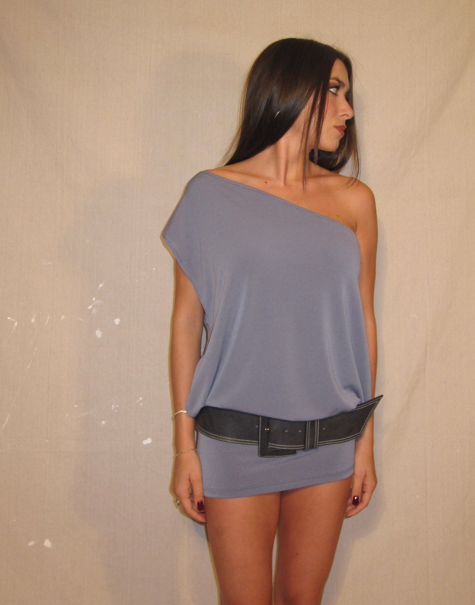 One shoulder slouch mini dress. Constructed using stretch crepe fabric 90% Polyester 10% Spandex. Very stretchy!!