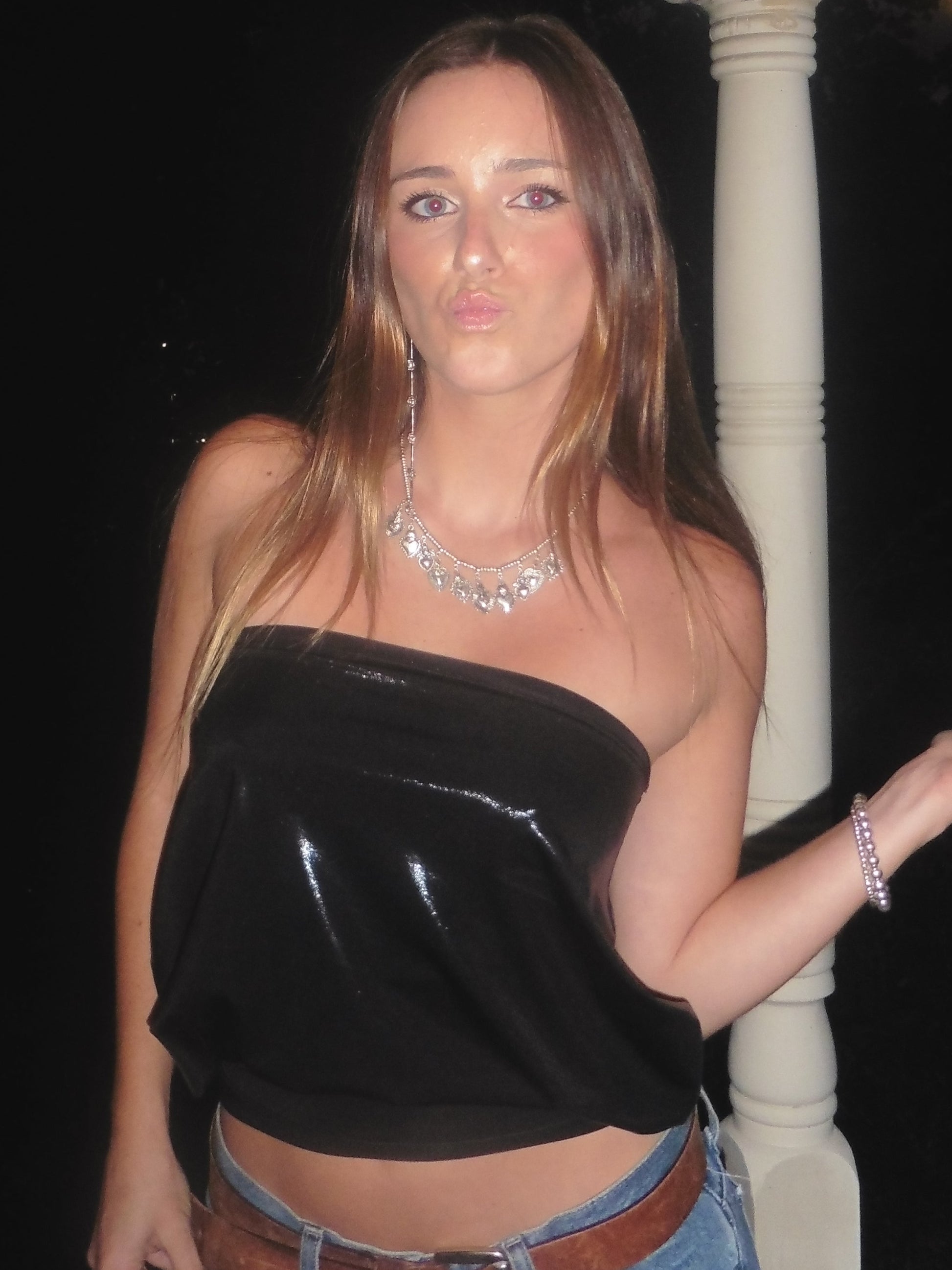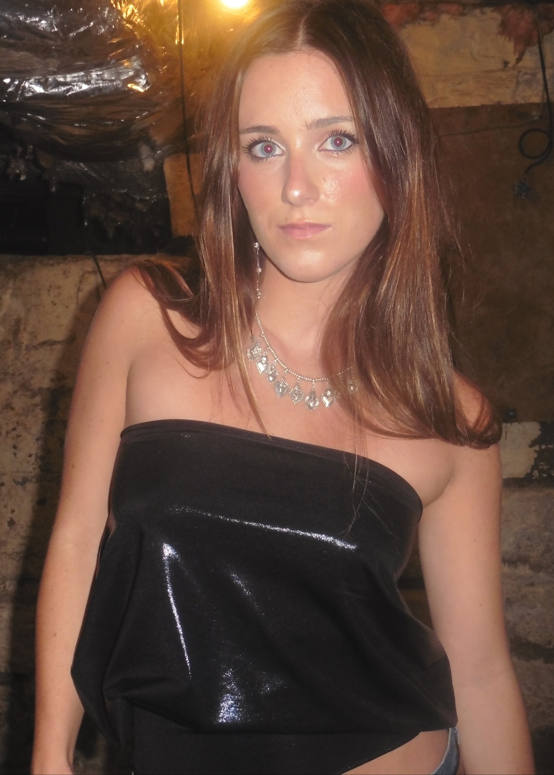 Handmade strapless top, constructed using black performance mystique fabric. 90% polyester 10% spandex.